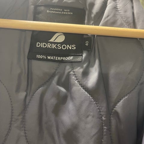 Didriksons Annet yttertøy for kvinner i størrelse 40 med grønn farge. Jakken har hette, flere lommer inkludert glidelås, og en justerbar midje. Materialet er slitesterkt og egnet for utendørs bruk.