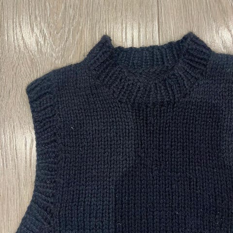 Hjemmestrikket vest i Fnugg av Camilla Phil.