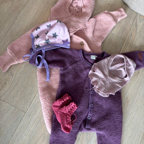 Selger 2 ulldresser og en ullbody. Dressene er Cubus og body fra hust & Claire.