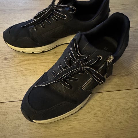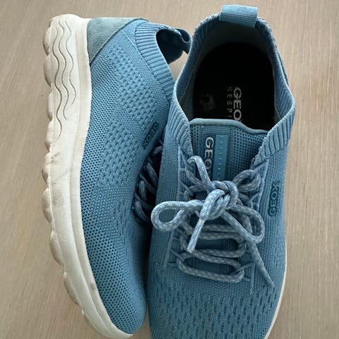 Geox Sneakers joggesko med fine detaljer. Størrelse 37, mørkblå. Lite brukt. Skoene har snøring og kombinasjon av materialer som gir støtte og komfort. Egnet for daglig bruk og fritidsaktiviteter.