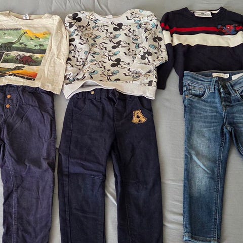 Fint sett for gutt i størrelse 98. Laget av 100 % myk bomull som er behagelig mot huden. Klærne er helt nye og aldri brukt. Passer perfekt til barnehage eller hverdagsbruk.