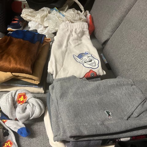 Barneklær for gutt i størrelse 116, flerfarget. Inneholder ulike plagg som gensere, t-skjorter, bukser og yttertøy. Materialer varierer mellom plaggene. Passer for barn i angitt størrelse.