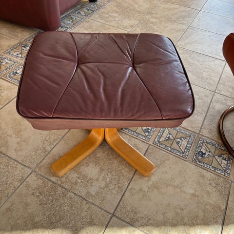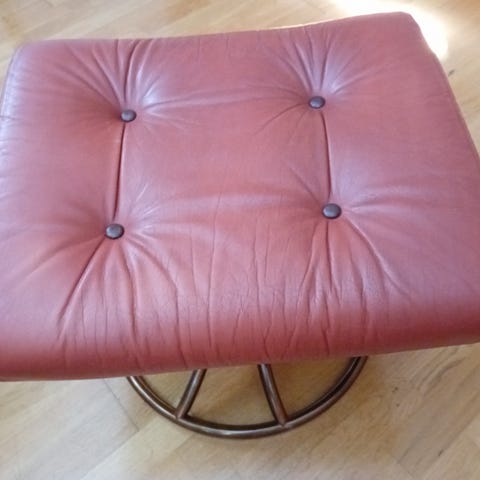2 retro Stressless paller / krakker i ekte skinn. Eik understell