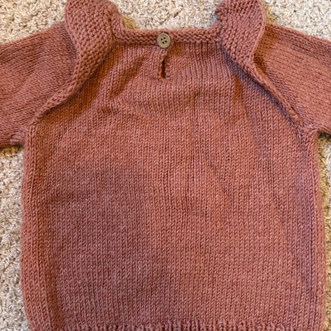 Selger en pakke med hjemmestrikk, en nydelig genser, bukse og et skjørt. Ca str 86.