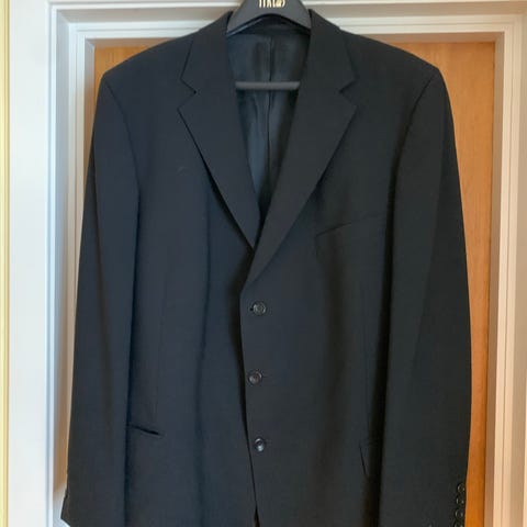 Svart herrefrakk i ullblanding, lite brukt og i god stand selges. Frakken har 2 lommer med klaff iutvendig i tillegg til 2 innerlommer. Det er splitt bak