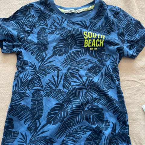 Som ny! Marineblå/hvit/mønstret t-shirt i bomull, str. 134-140 / 9-10 år, knapt brukt, fremstår som ny, selges kr. 300,-. Hentes Lillehammer. Kan også sendes mot at kjøper dekker porto.
