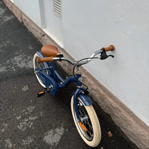Grønn 12" Vintage sykkel fra Stoy. Sykkelen har en robust stålramme.