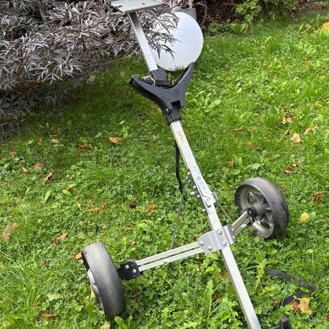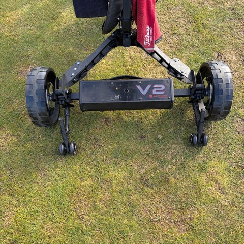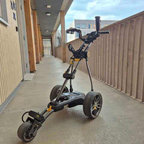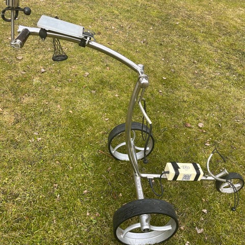 Fin elektrisk golftralle med fjernkontroll.