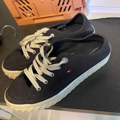 Helt ubrukt TOMMY HILFIGER. En sporty stoffsko til jeans/shorts! Kjøpt på Zalando. Blitt liggende, så helt rene og pene. Normal 39. Tøy/canvas sko, ikke noe skinn på. De er heller ikke smale, vil jeg si. Forhåndsvips, bruker ikke Fiks Ferdig.