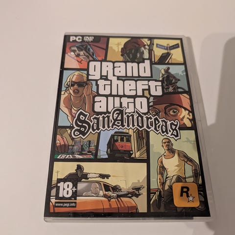 Søkeord/Tags: Grand Theft Auto, GTA, San Andreas, PS2, PlayStation 2, Rockstar Games, action-eventyr, åpen verden, Open World, CJ, klassiker, retrospill, gaming, DVD-ROM, PEGI 18+.