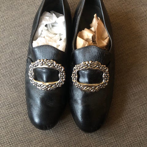 Vintage semska skinn hæler i en mellom mørk beige farge, de trenger en tur til skomakeren så derfor selges de billig😅