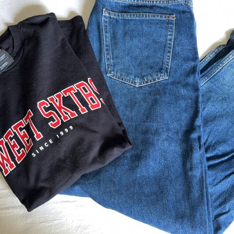 Baggy jeans, 2 hettegensere, 1 Dickies belte