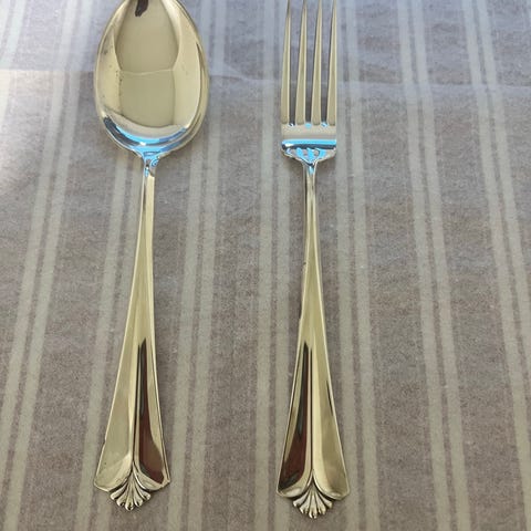 Rådhus med Vifte teskje og påleggsgaffel av David Andersen selges samlet.