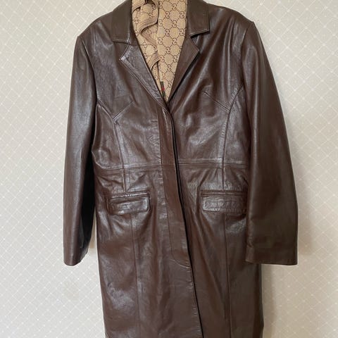 Nydelig moccabrun trenchcoat/frakk selges. Ingen merker. Foret. Italiensk hånd verk. Litt oversized.