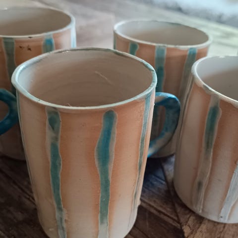 4 Keramikkopper / Keramikkrus fra AMFORA Design (lokalt Keramikkverksted) selges til redusert pris kr.799,- (Ny kr. 1200,-)