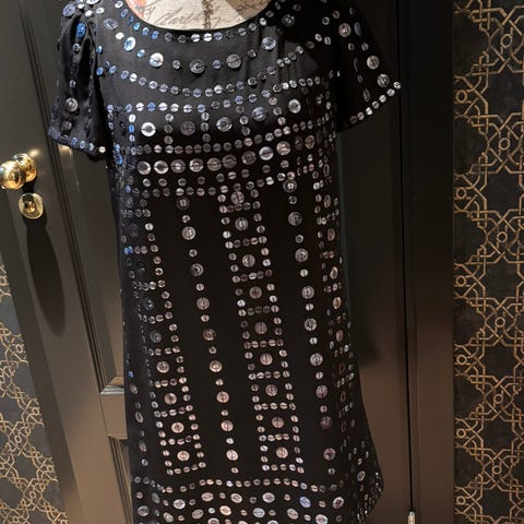 Kjolen har et dekorativt mønster laget av paljetter på forsiden.