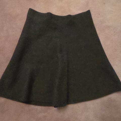 Donna Hanna A-line skjørt i mørkegrønn farge, størrelse S, strikk i livet. Materiale: 69% viskose, 15% polyester, 12% nylon.