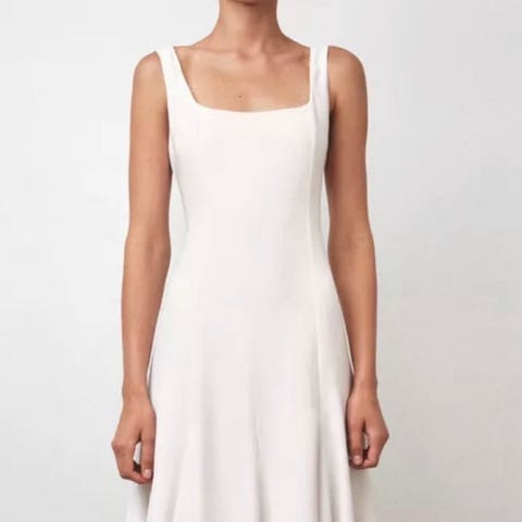 kjole i størrelse M-L for kvinner, hvit farge. Kjolen har lagdelt design med blonder og et lett, gjennomsiktig materiale som gir et feminint uttrykk.