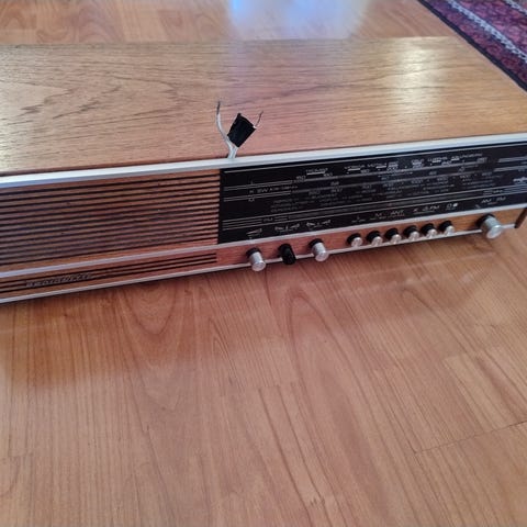Radionette Combi deleapparat. Grammofondel, bakplate og høyttaler er borte. Rør, nettdel og batteri er der, men ikke sjekket. Dette er første utgave av Combi.