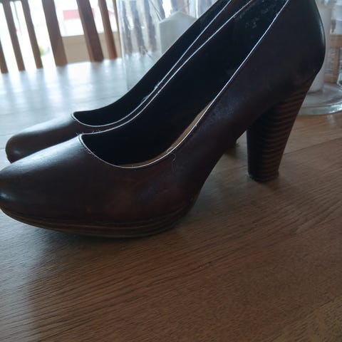 Brune skinnpumps med høy hæl