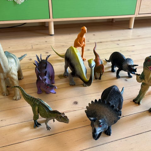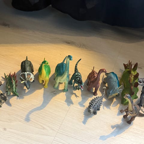 Samling av dyrefigurer laget i plastmateriale, inkludert ulike dyr som løve, sjiraff, elefant, hai, krokodille, ulv og papegøye. Passer for barn og samlere, egnet til lek og dekorasjon.