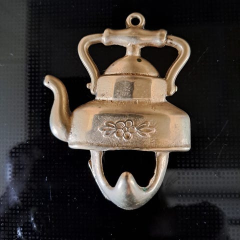 Kjøkkenknagger i messing formet som kaffekjele