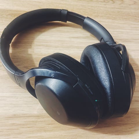 Sony MDR-1000X hodetelefoner i svart farge. Hodetelefonene har polstrede øreputer og justerbar hodebøyle for komfortabel passform. selges til høystbydene