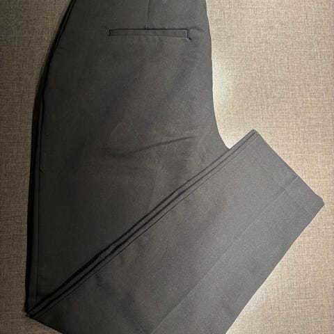 H&M bukser i størrelse 38 for kvinner. Fargen er grå, og buksen har flere lommer, inkludert cargolommer på sidene. Materialet ser ut til å være lett og egnet for hverdagsbruk.