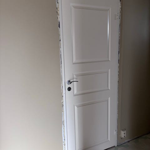 Hvit tredør med klassisk design. Kun dør.