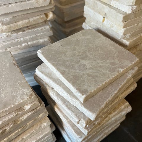 Botticino marmorfliser – 10x10 cm, tumbled finish – ekte naturstein.