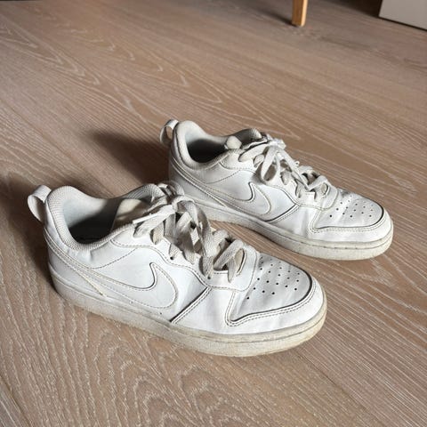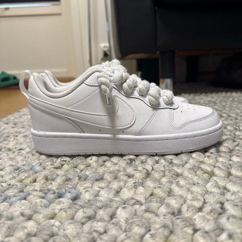 Nike barn sko i størrelse 40, hvit farge. Skoene er designet for gutter og har en klassisk stil med snøring. Laget av materialer som gir komfort og støtte for daglig bruk.