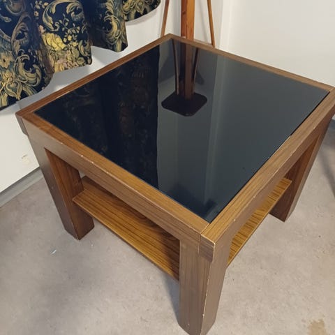 Solid hjørnebord med glass selges