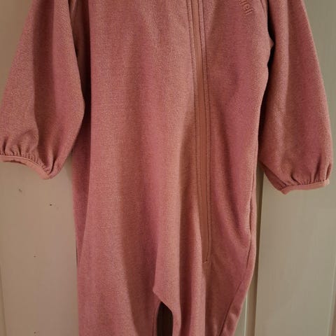 Dressen har god fleecekrage, lang glidelås, avtagbar hette, stramming i livet og på hetten. Ermene har en ekstra mansjett. Det er en lett dress og den er vid og god når barnet skal leke. Refleks flere steder på dressen. Dessverre mangler den ene originale strikken under beinet, men det er satt på ny.