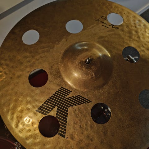 Istanbul Alchemy 19“. Ren og pen lyd, men jeg har for mange cymbaler nå. Vistnok laget tiltenkt å bruke til rock i sin tid. Ikke i prod lenger. Cymbalen er som ny.