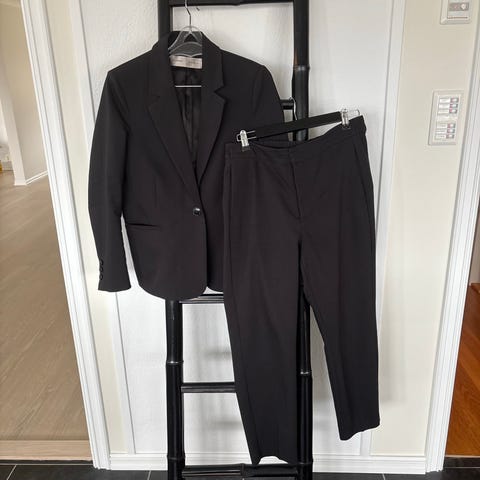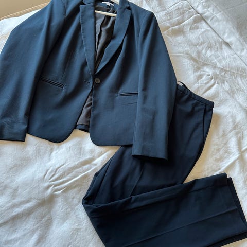 Selger en dressjakke og dressbukse fra Ellos i str 38. Jakka kosta originalt 699 og buksa kosta 449. Har kun blitt brukt et par ganger! Selges helst samlet for 400 kr🙂