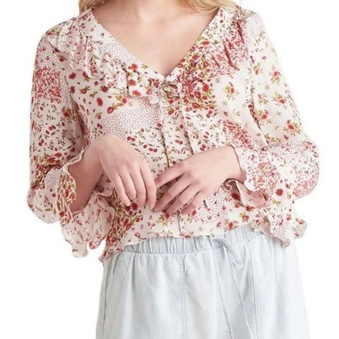 Blomstret bluse i gladfarger fra Zara woman str M.