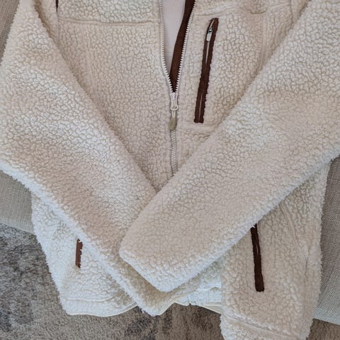 Finse Sherpa Fleece D str 42. Nesten ikke brukt. Nypris: 999kr, selges for 350kr. Porto med sporing på 69kr. Varm, god og svært behagelig pilefleece som både kan brukes hele året, enten som mellomlag på kalde dager eller som jakke på varme sommerkvelder. Den har brystlomme og sidelommer med glidelås og fine detaljer i imitert skinn.