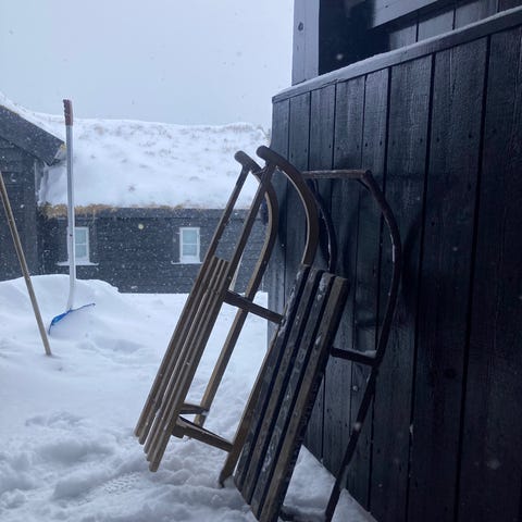 10 år gammel lekehytte gis bort mot henting. Denne må hentes med kranbil. Hytten ligger ca 2 meter opp fra veien og 5/6 meter bort fra veien. Lekehytten er fin innvendig og er isolet. Vinduene er vanlige vinduer man bruker til hus, og det er lagt opp rør dersom strøm er aktuelt å legge inn. Hytten trenger utvendig vedlikehold, og kanskje en ny dør.