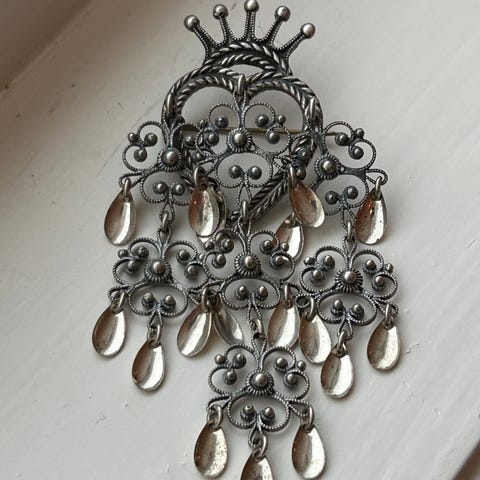 Nydelig og stor hjertesølje i forgyllet sølv