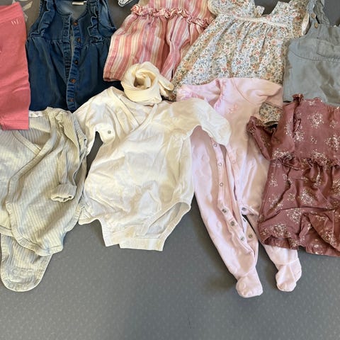 En av kjolene er i str 86, liten i str. Aldri brukt da den ikke passet.
