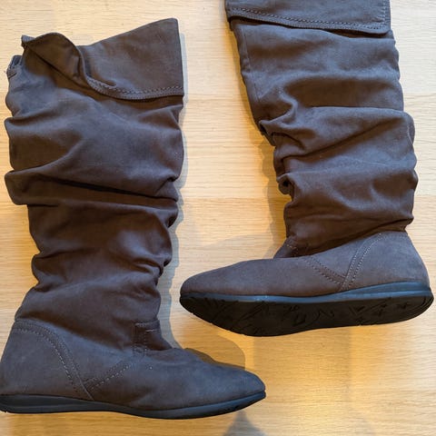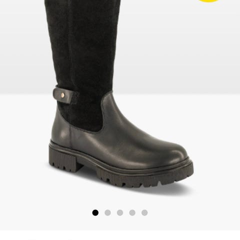 Kool superfine støvletter i størrelse 34. Overdelen er i imitert skinn, den har et lett tekstilfôr og fleksibel såle av TPR-gummi. Den har elastikk på utsiden og glidelås på innsiden slik at den er lett å ta av og på.
