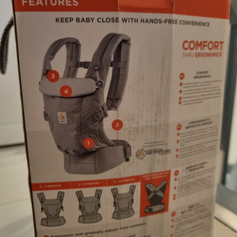 Bæreselen har ergonomisk design for komfort og støtte til både barn og voksen.