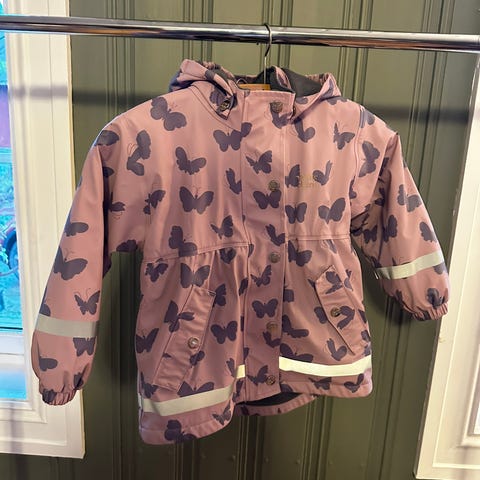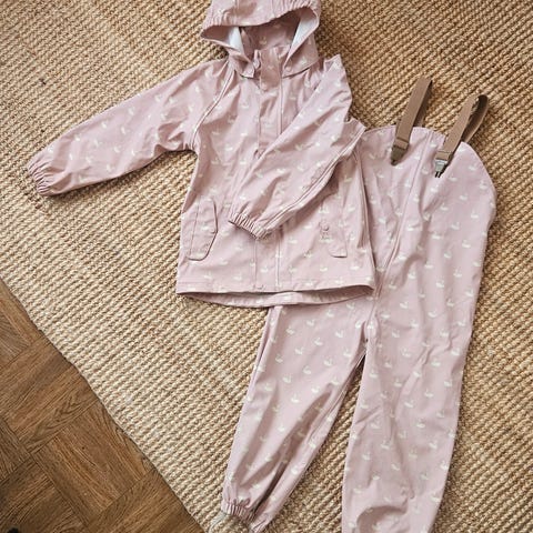 Fleece foret regntøy som er perfekt til kald høst, den er fin som ny. Se bare siste bildet, det er en liten ubetydelig hull som kan repareres med litt tråd.