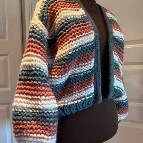 Flott strikket jakke med hette i 100% merinoull. Vasket med parfymefri Milo.