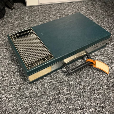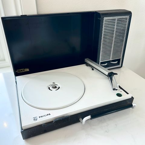 Selges as is. Lyd i anlegget. Radioen virker. Platespilleren tar 78 plater, LP og singler. Stift og alt er på plass. Virker som motoren til platespilleren dabber litt av etterhvert som den har stått på. Derfor satt jeg den i «mangler» kategorien. Kan kobles til stikkkontakt eller batterier. Hentes på Torshov. Kan sendes om ønskelig