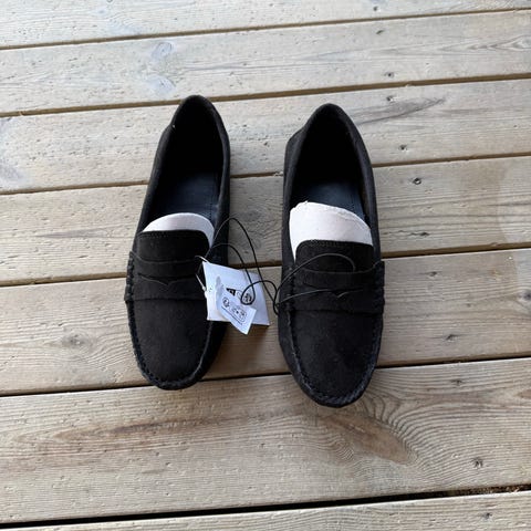 H&M mokkasiner og båtsko i størrelse 39. Skoene er brune og har en klassisk design med mykt materiale. Egnet for uformell bruk og gir komfort gjennom hele dagen.