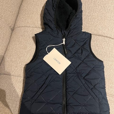 Liewood - Pent brukt reversibel vest kan brukes begge veier, enten rosa quilt eller hvit fleece. Størrelse 8y Noen bruksmerker over lommer på rosa side.