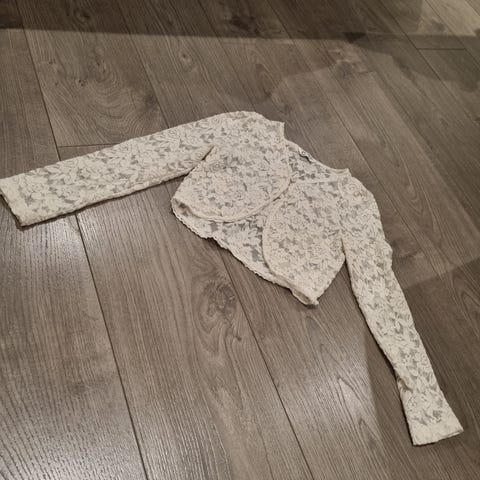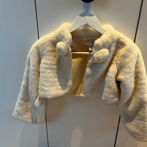 Bolero i fuskepels og tyllskjørt, str. 128 selges samlet. Brukt kun en gang, og ikke synlig brukt. Vaskbare.