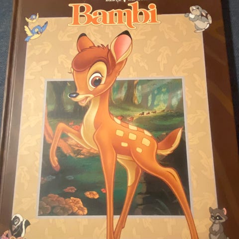 Walt Disney Bambi barnebok med illustrasjoner. Boken inneholder historien om Bambi, en ung hjort, og er egnet for barn. Innbundet utgave med fargerike bilder og tekst på norsk.