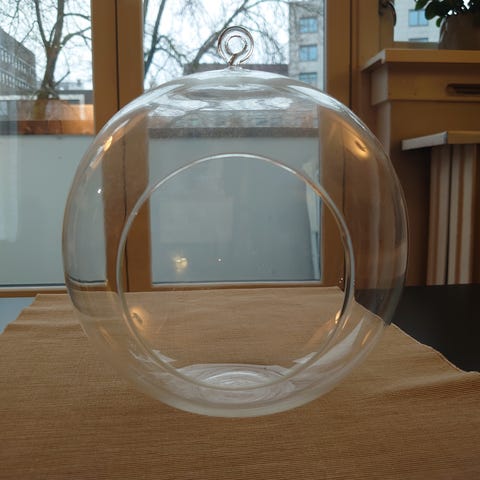 Krystallkule hengende dekorasjon laget av klart glass med fasettert overflate. Dekorasjonen er rund og designet for å henge, noe som gjør den egnet til bruk som lysreflektor eller dekorativt element i hjemmet. Ca 8 cm. Kaster nydelige reflekser i rommet når lyset treffer den, jeg har hatt den hengende i vindu og i Hagen,